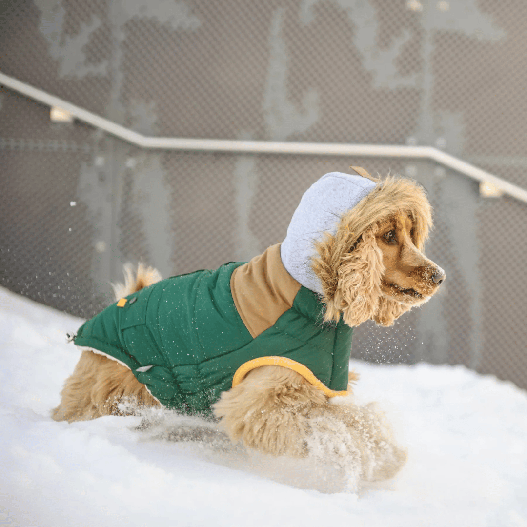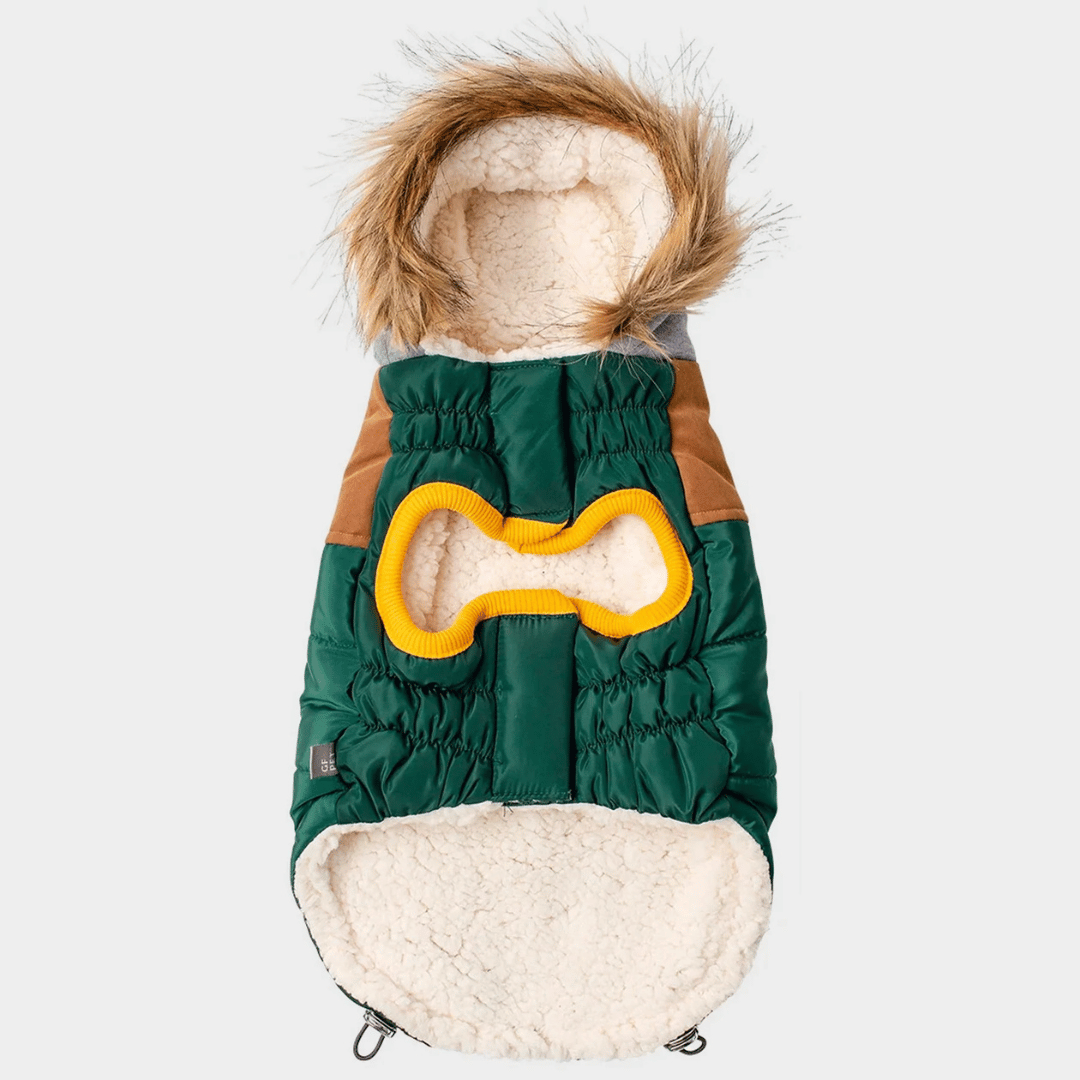 La CAMPERA LODGE PARKA FOREST combina moda y funcionalidad en una prenda de lujo para tu perro. Con un calce espectacular, capucha de polar con estilo, detalles tipo gamuza sintética y tecnología Elasto-Fit®, esta campera abrigada con forro sherpa tipo “popcorn” es resistente al agua y se ajusta perfectamente al cuerpo.