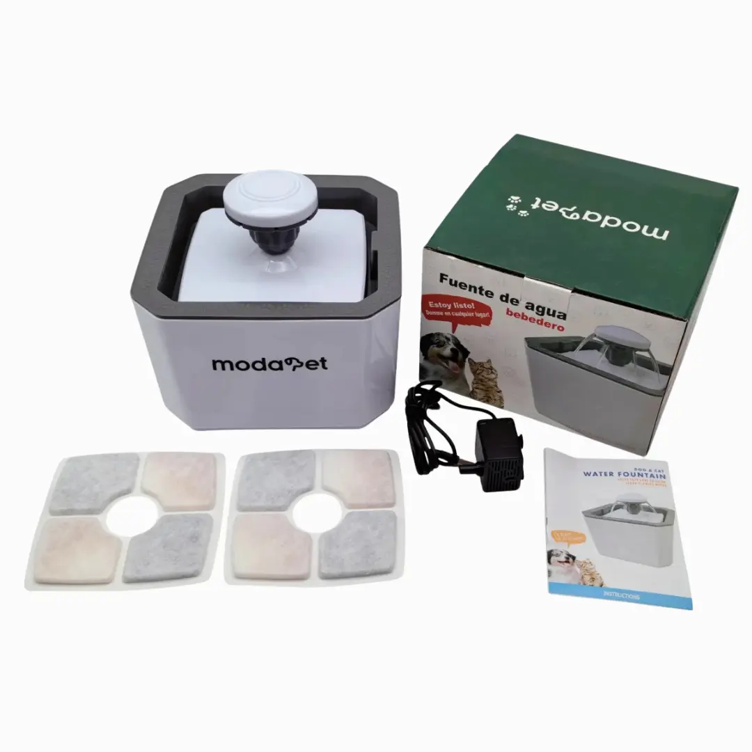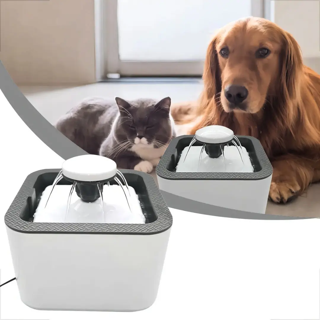 La FUENTE BEBEDERO  garantizan que tus mascotas tengan acceso a agua fresca y limpia permanentemente. El dispensador automático cuenta con un sistema de recirculación de 1.6L, elaborado con materiales libres de BPA, brindándote total tranquilidad sobre la seguridad de tus queridas mascotas.