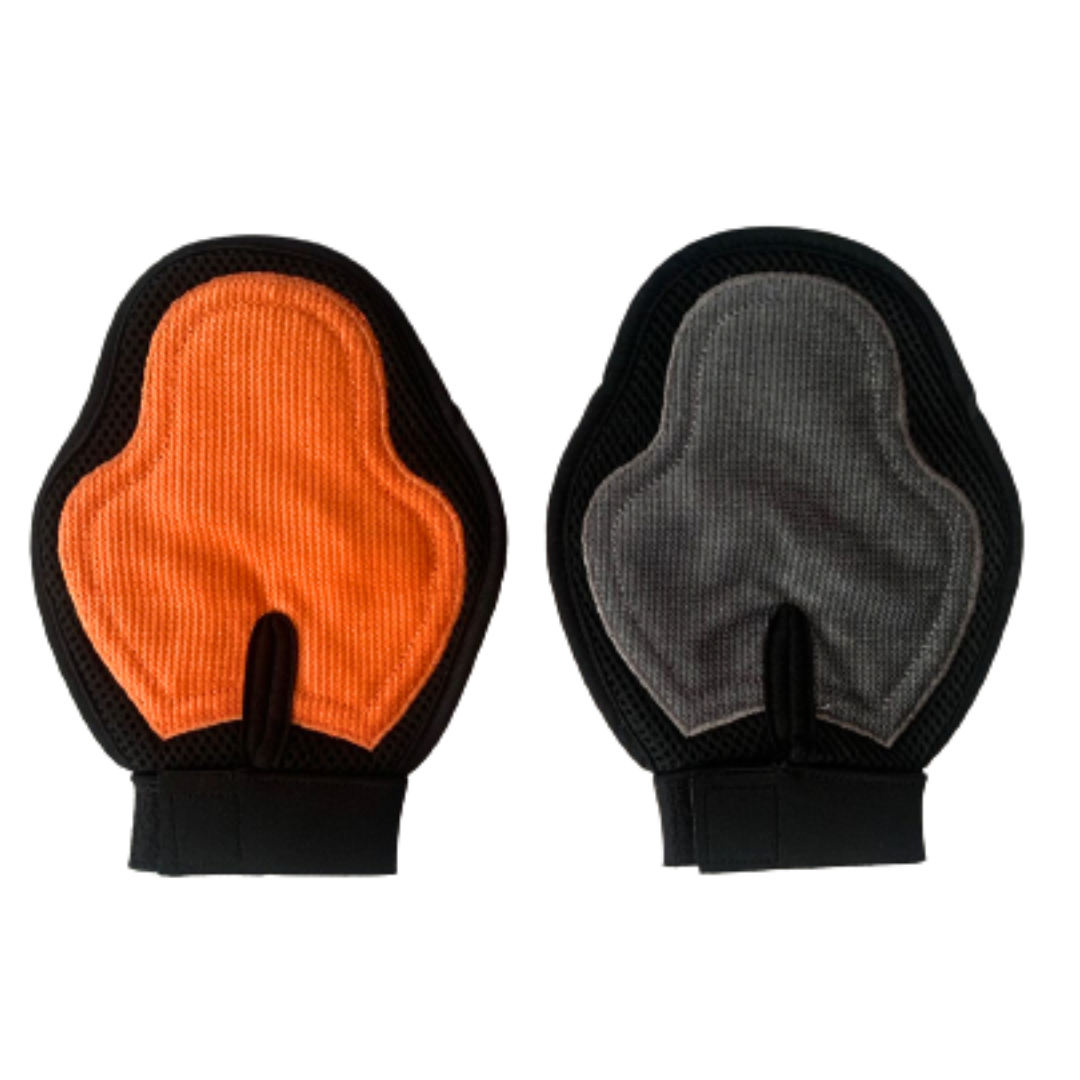 El GUANTE PARA BAÑO Y CEPILLADO ofrece una nueva manera de cepillar a tu perro o gato ya que remueve el exceso de pelo y a la vez brinda un suave masaje. También puedes usarlo durante el baño. El GUANTE tiene un diseño ergonómico. Lleva un lado acolchado de tela para retirar el pelo muerto y un lado de silicona para masajear a tu mascota.