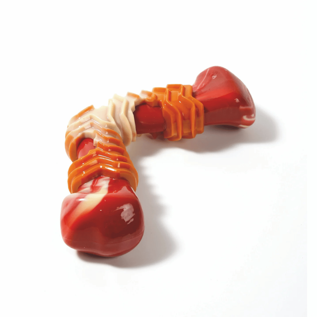Con un atractivo diseño texturizado y delicioso sabor a bacon, estimula el instinto natural de morder y reduce el estrés. Ideal para jugar, morder y mantener a tu perro activo y feliz