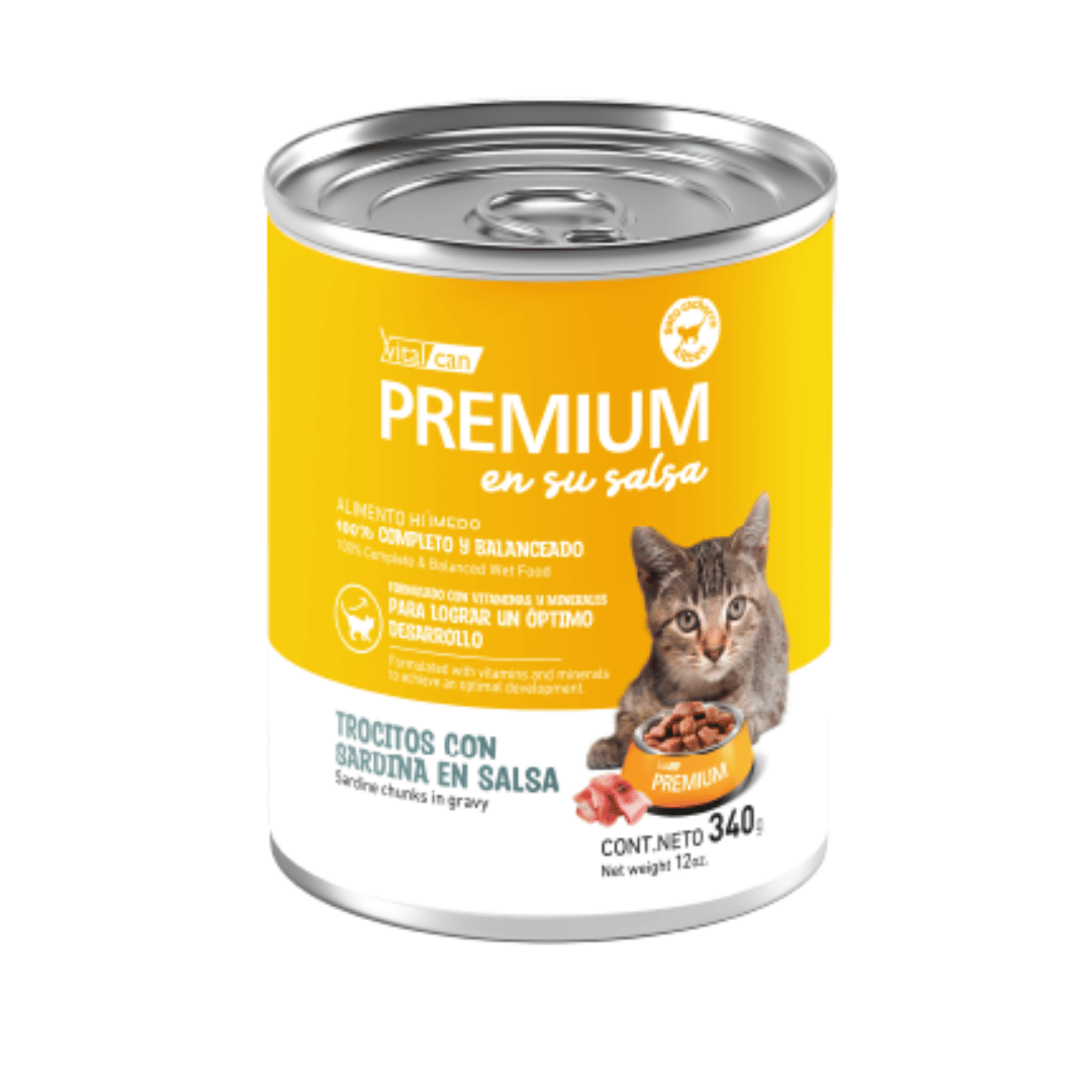 VITALCAN PREMIUM CAT KITTEN SARDINA EN SALSA es una propuesta deliciosa que tus compañeros no podrán resistir.