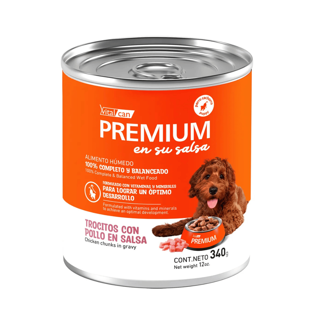 VITALCAN PREMIUM DOG PUPPY POLLO EN SALSA es una propuesta deliciosa que tus compañeros no podrán resistir.