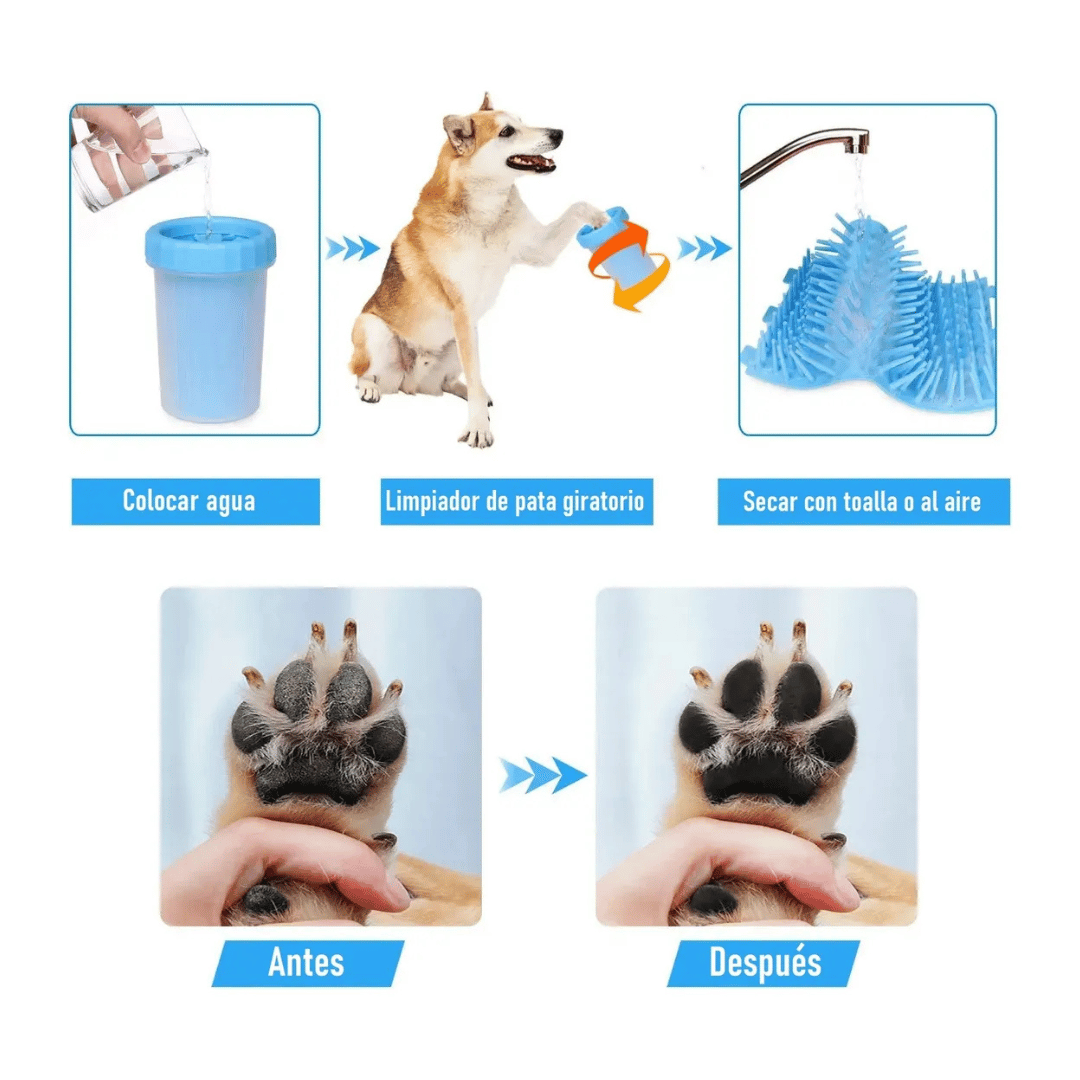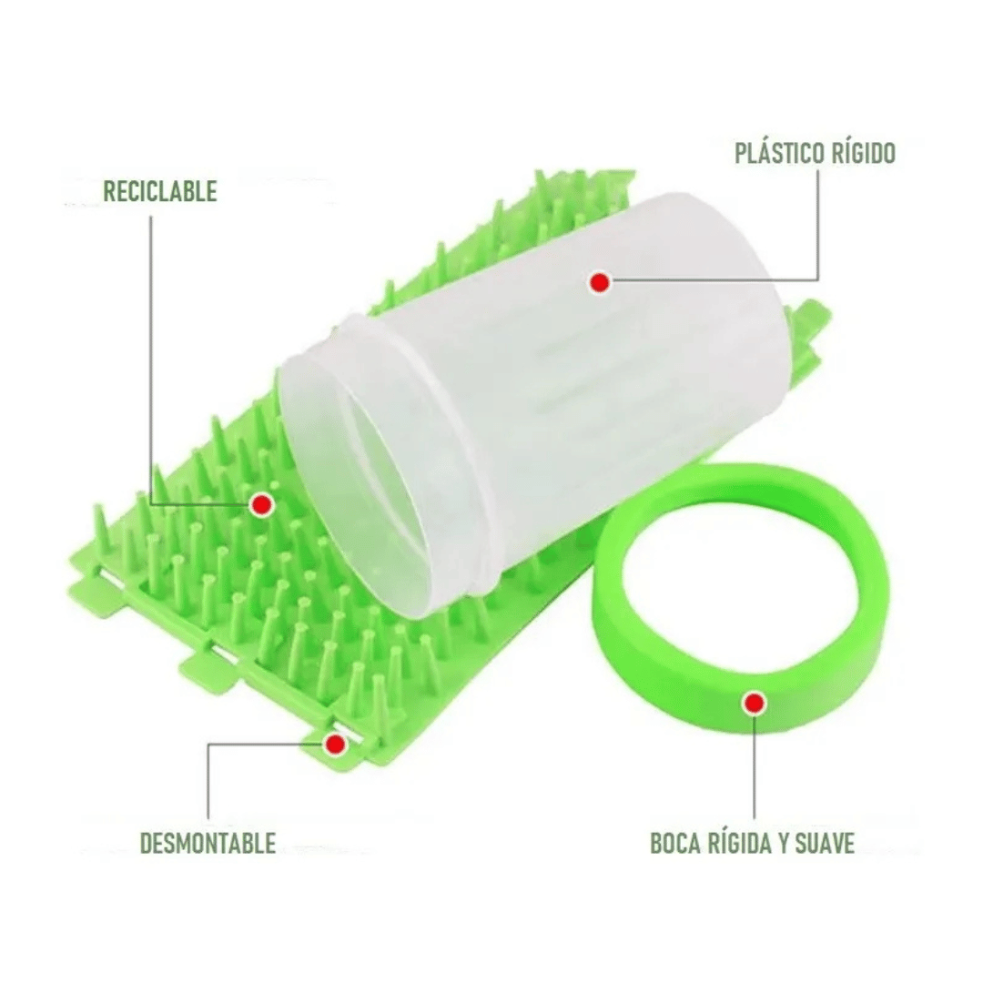 El LIMPIA PATAS PARA MASCOTAS es la solución ideal para mantener la limpieza en tu hogar mientras cuidas de tu mascota. Diseñado específicamente para perros y gatos, este producto facilita la limpieza de las patas de tu compañero peludo después de sus paseos, evitando que la suciedad y el barro se esparzan por toda la casa.