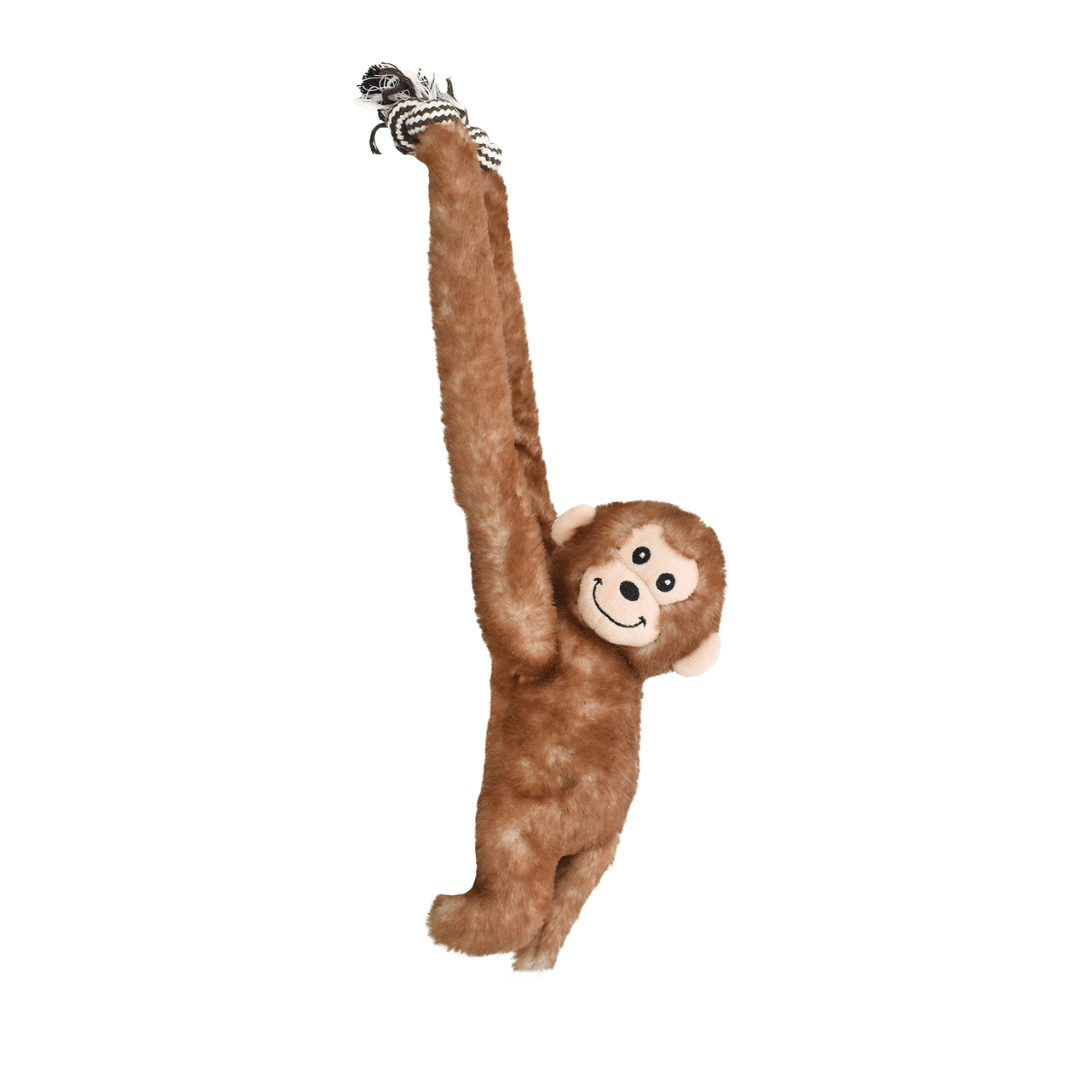 El MONO DE PELUCHE BP está diseñado para proporcionar momentos de juego y relajación, ayudando a reducir el estrés y la ansiedad de tu perro. Este tierno animalito esconde sogas en sus brazos largos y nudos en sus extremos, lo que permitirá horas de juegos de tira y afloja. También es un buen accesorio para lanzar y buscar. Para mayor diversión cuenta con un chirriador en su interior.