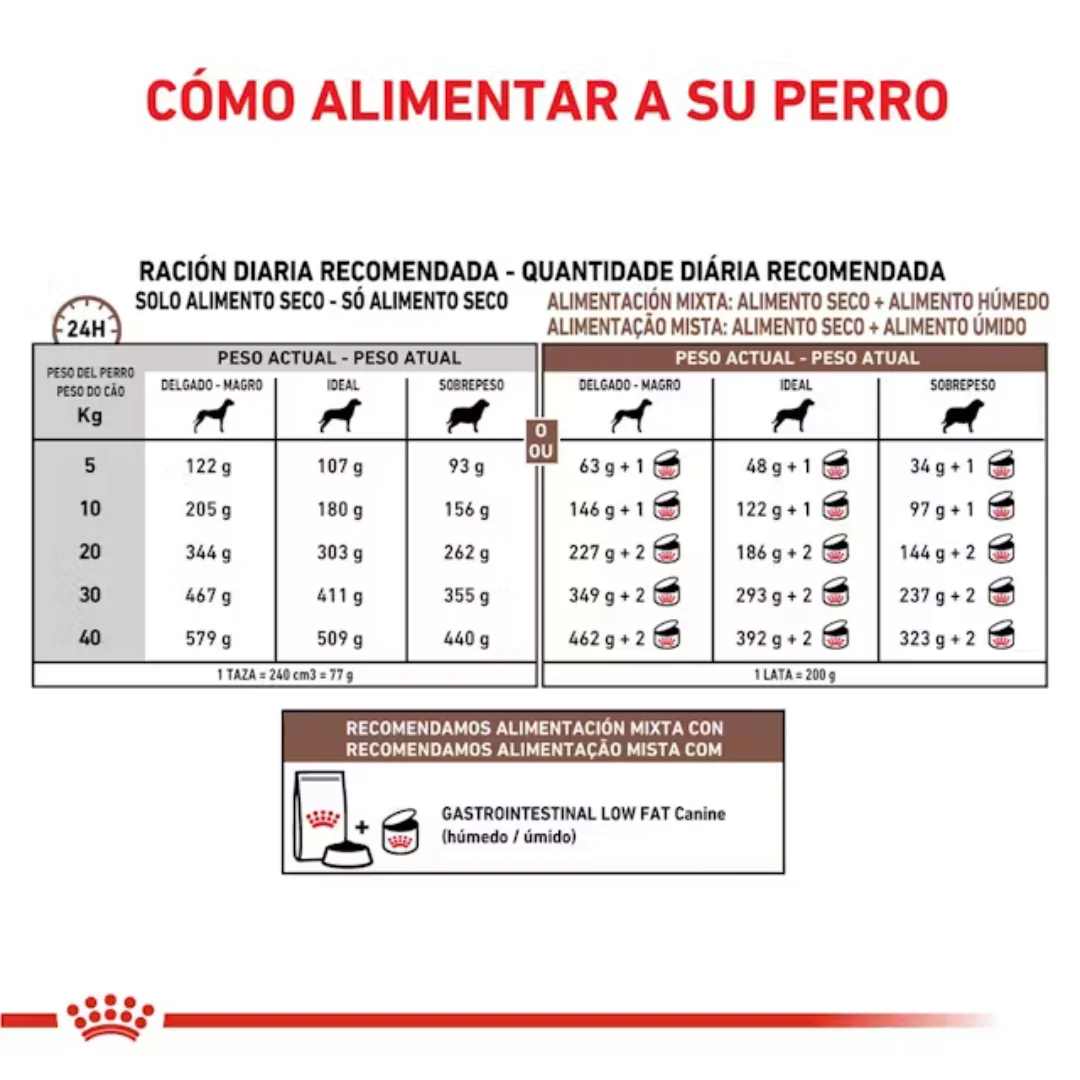 ROYAL CANIN GASTROINTESTINAL LOW FAT es un alimento indicado para perros adultos, formulado con el objetivo de ayudar en la regulación del metabolismo lipídico en caso de hiperlipidemia, y como compensación de una mala digestión. Ingredientes de alta digestibilidad. Bajo contenido en grasas y alto contenido en ácidos grasos esenciales.