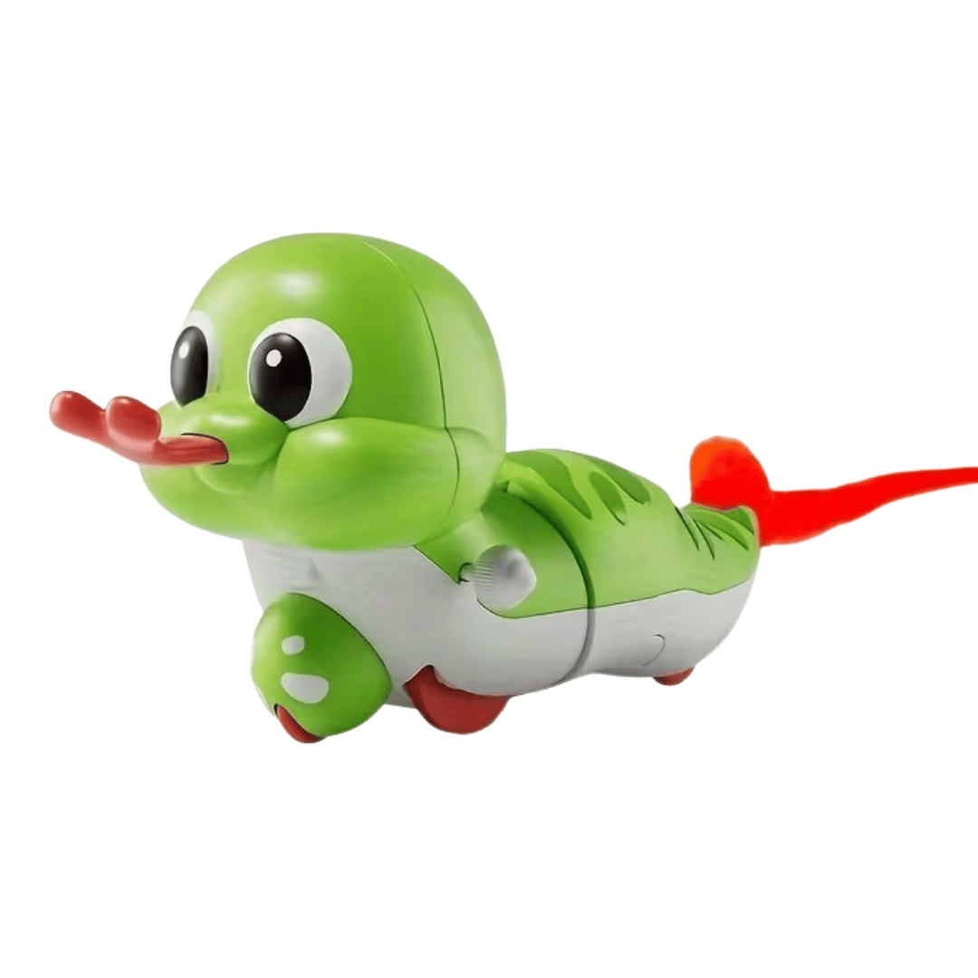 Funciona con resorte, por lo que no necesita pilas. Simplemente gira el resorte para que la serpiente se mueva, permitiendo que el juguete se extienda y se retraiga para gatear.