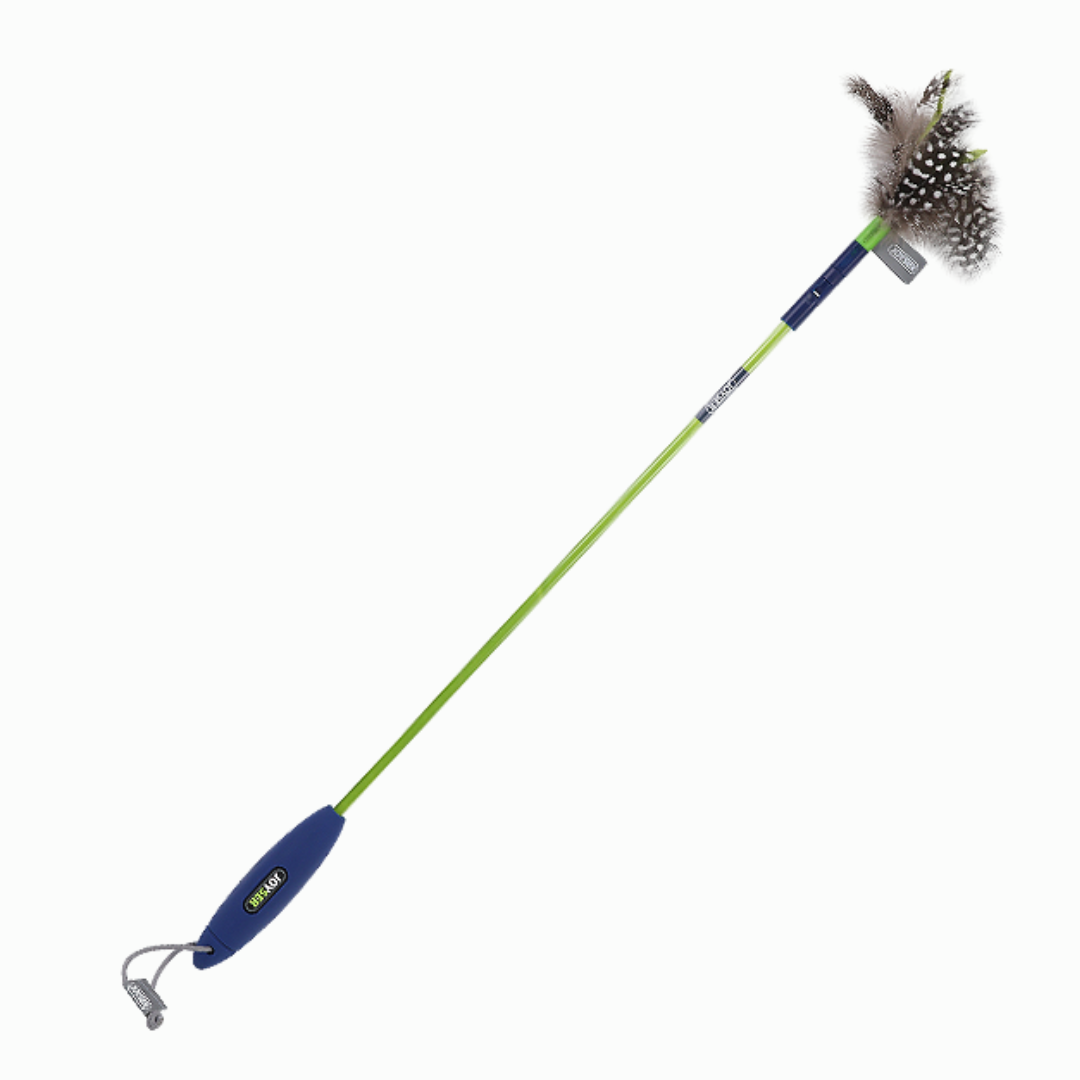 La VARITA PLUMAS VERDES JOYSER ha sido diseñada para proporcionar estimulación mental a través del juego, evitando el aburrimiento de tu gato y despertando su instinto de caza. Gracias a sus puntas intercambiables, podés personalizar la experiencia con plumas naturales o hierba gatera. Lleva mango de goma, lo que aporta mayor comodidad y un agarre suave.
